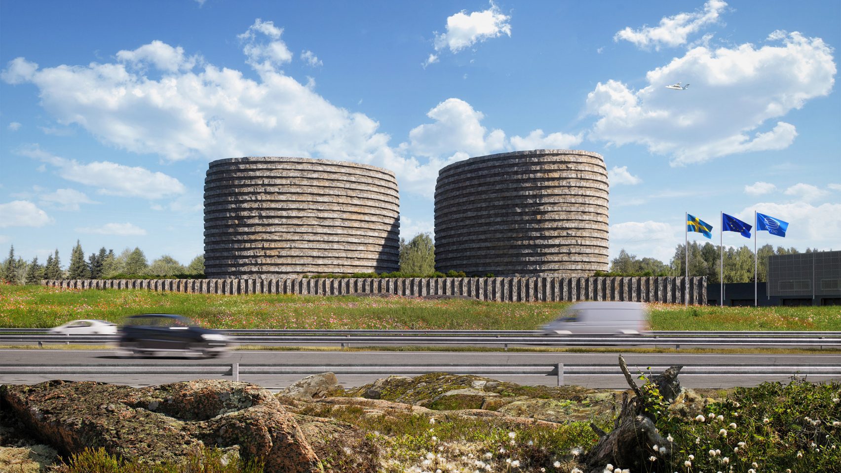 Paris-based studio Carl Fredrik Svenstedt Architects has unveiled plans for a data centre in Sweden, which will be housed in silo-like forms built from structural stone. Carl Fredrik Svenstedt Architects first developed proposals for stone data centres across Europe, named Stone Clouds, in 2022 for