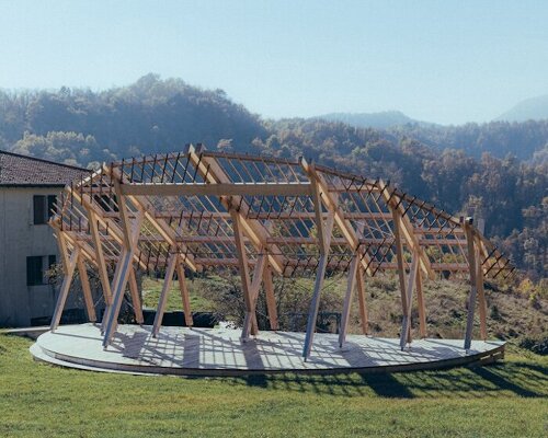 the design follows proportional rules derived from the golden section and the logarithmic spiral associated with the nautilus fossil. The post GRRIZ shapes reversible timber structure along the arc of the setting sun in italian mountains appeared first on designboom | architecture & design magazine.